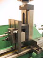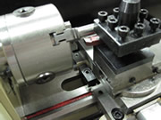 トップスライドを角度付で固定し、テーパー切削