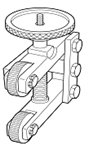 ハンドルやつまみにギザギザをつける作業に使用します。旋盤の刃物台に取り付け、工作物に押しつけてギザギザをつけます。