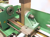 細長くシャフトのようなワークを加工する時、バイトの圧力で工作物が逃げ、工作精度が悪くなるのを防止するための装置です。