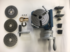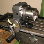 中型インデクスロータリーテーブルに三爪、四爪チャックと取付アダプターを併用すれば歯車製作が可能です。