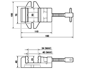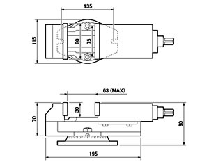 フライス盤のテーブル(万能工作機械の場合はミーリングテーブル)に取り付けて使用します。小は簡易型で形状が異なる上、旋回ベースも付いていません。
